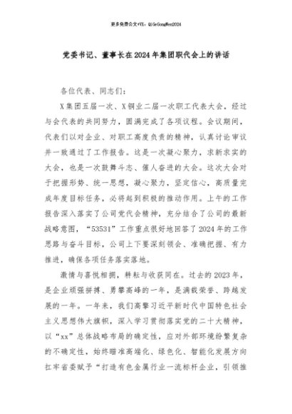 / 【七哥公文】2024年:党委书记、董事长在2024年集团职代会上的讲话+更多免费公文+VX:QiGeGongWen2024