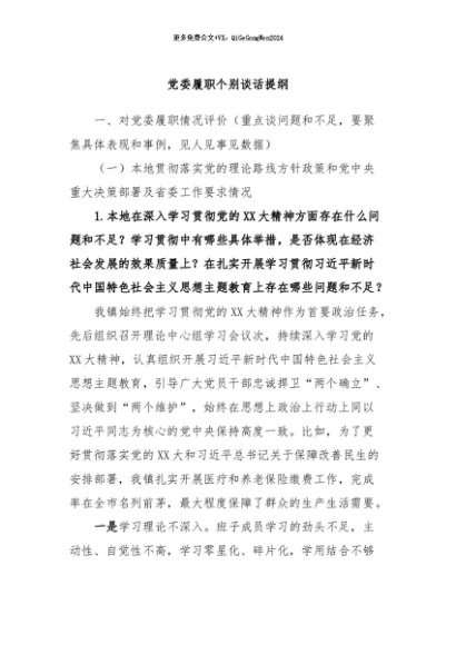 / 【七哥公文】2024年:党委履职个别谈话提纲+更多免费公文+VX:QiGeGongWen2024