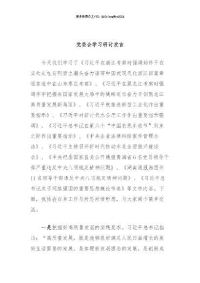 / 【七哥公文】2024年:党委会学习研讨发言 (1)+更多免费公文+VX:QiGeGongWen2024