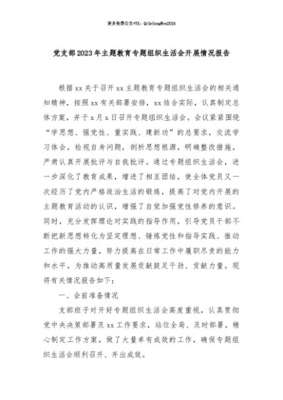 【七哥公文】2024年:党支部2023年主题教育专题组织生活会开展情况报告.+更多免费公文+VX:QiGeGongWen2024