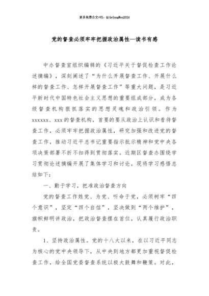 / 【七哥公文】2024年:党的督查必须牢牢把握政治属性——读书有感+更多免费公文+VX:QiGeGongWen2024