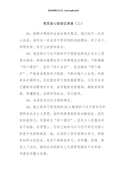 【七哥公文】2024年:党员谈心谈话记录表(二)+更多免费公文+VX:QiGeGongWen2024
