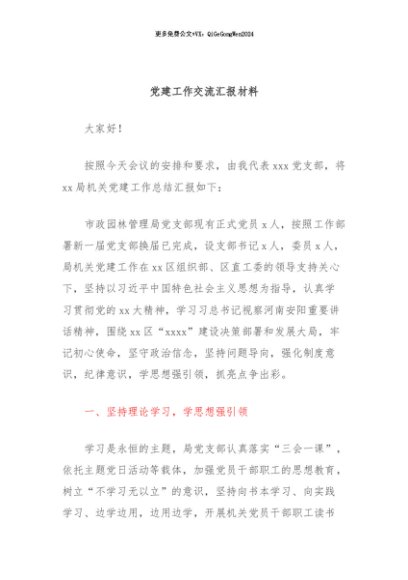 / 【七哥公文】2024年:党建工作交流汇报材料+更多免费公文+VX:QiGeGongWen2024