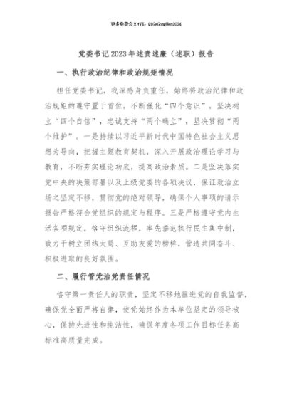 / 【七哥公文】2024年:党委书记2023年述责述廉(述职)报告+更多免费公文+VX:QiGeGongWen2024