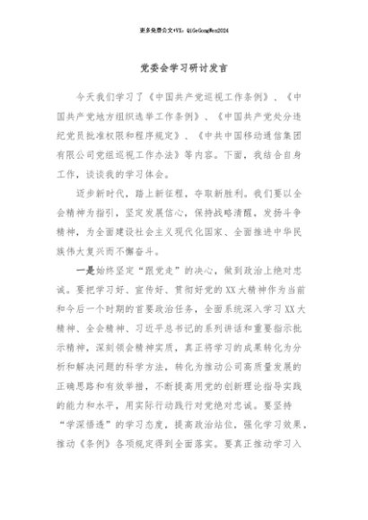 / 【七哥公文】2024年:党委会学习研讨发言+更多免费公文+VX:QiGeGongWen2024