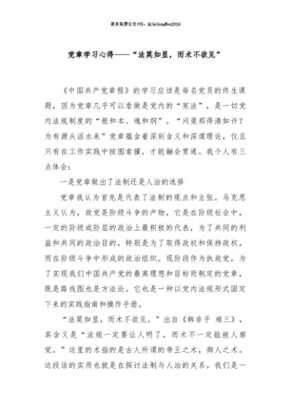 / 【七哥公文】2024年:党章学习心得——“法莫如显,而术不欲见”+更多免费公文+VX:QiGeGongWen2024
