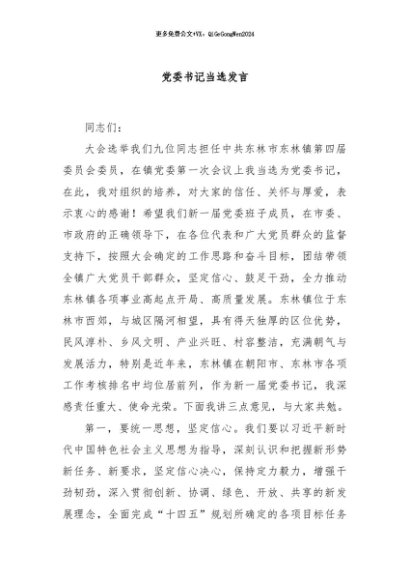 / 【七哥公文】2024年:党委书记当选发言+更多免费公文+VX:QiGeGongWen2024