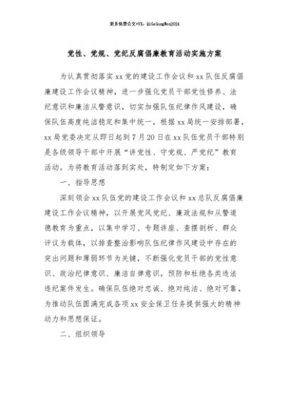 / 【七哥公文】2024年:党性、党规、党纪反腐倡廉教育活动实施方案+更多免费公文+VX:QiGeGongWen2024