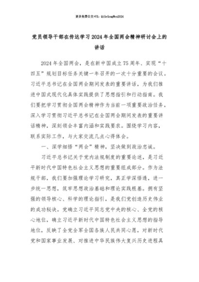 【七哥公文】2024年:党员领导干部在传达学习2024年全国两会精神研讨会上的讲话+更多免费公文+VX:QiGeGongWen2024