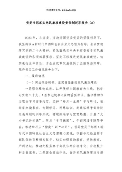 / 【七哥公文】2024年:党委书记落实党风廉政建设责任制述职报告(2)+更多免费公文+VX:QiGeGongWen2024