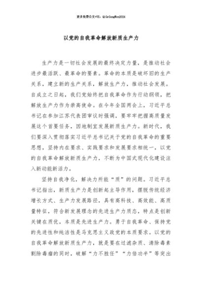 / 【七哥公文】2024年:以党的自我革命解放新质生产力+更多免费公文+VX:QiGeGongWen2024
