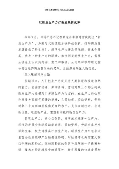 【七哥公文】2024年:以新质生产力打造发展新优势+更多免费公文+VX:QiGeGongWen2024