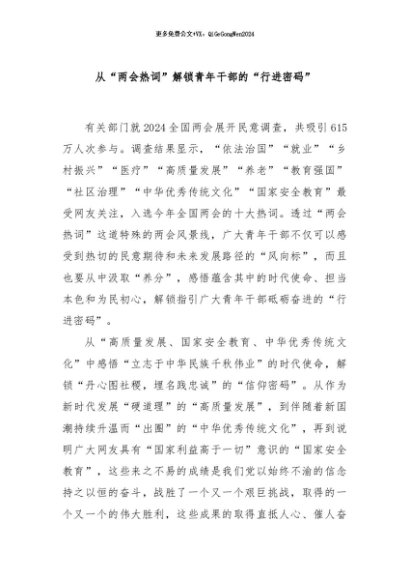 / 【七哥公文】2024年:从“两会热词”解锁青年干部的“行进密码”+更多免费公文+VX:QiGeGongWen2024