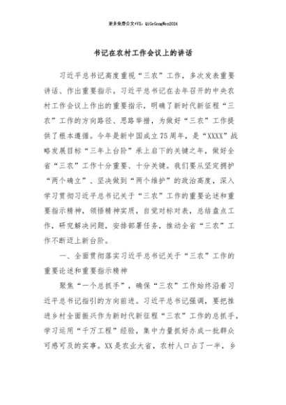 / 【七哥公文】2024年:书记在农村工作会议上的讲话+更多免费公文+VX:QiGeGongWen2024