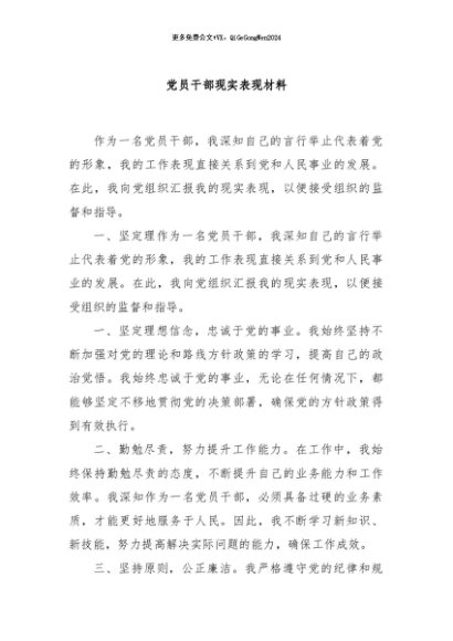 / 【七哥公文】2024年:党员干部现实表现材料+更多免费公文+VX:QiGeGongWen2024