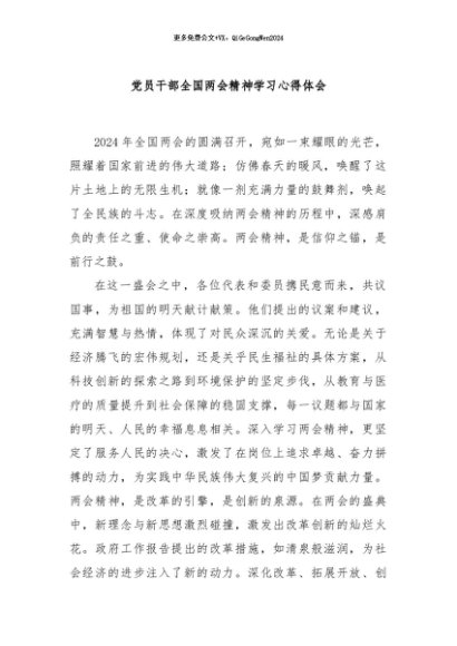 / 【七哥公文】2024年:党员干部全国两会精神学习心得体会+更多免费公文+VX:QiGeGongWen2024