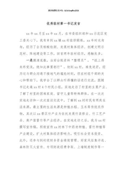 / 【七哥公文】2024年:优秀驻村第一书记发言+更多免费公文+VX:QiGeGongWen2024