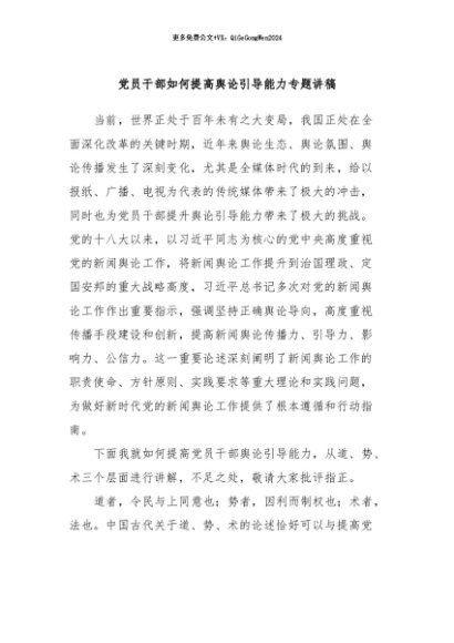 / 【七哥公文】2024年:党员干部如何提高舆论引导能力专题讲稿+更多免费公文+VX:QiGeGongWen2024