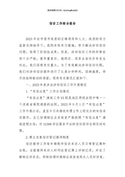 / 【七哥公文】2024年:信访工作综合报告+更多免费公文+VX:QiGeGongWen2024