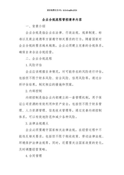 / 【七哥公文】2024年:企业合规流程管控清单内容+更多免费公文+VX:QiGeGongWen2024