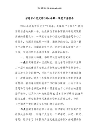 / 【七哥公文】2024年:信息中心党支部2024年第一季度工作报告+更多免费公文+VX:QiGeGongWen2024