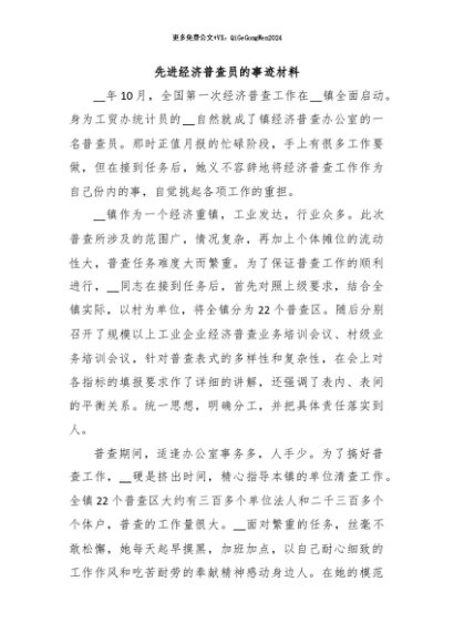 / 【七哥公文】2024年:先进经济普查员的事迹材料+更多免费公文+VX:QiGeGongWen2024