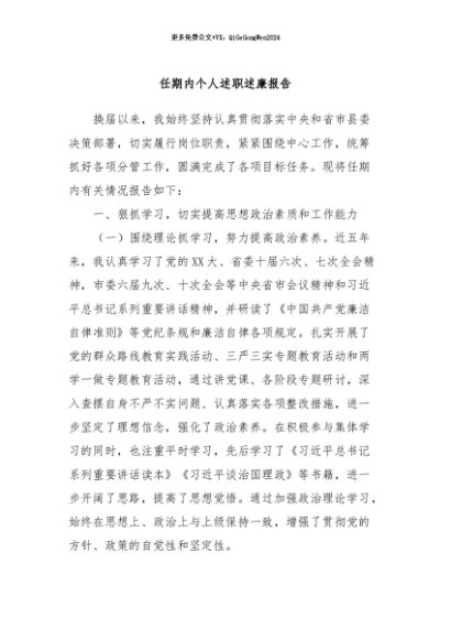 / 【七哥公文】2024年:任期内个人述职述廉报告+更多免费公文+VX:QiGeGongWen2024