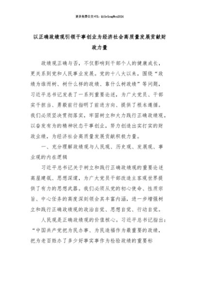 【七哥公文】2024年:以正确政绩观引领干事创业为经济社会高质量发展贡献财政力量+更多免费公文+VX:QiGeGongWen2024