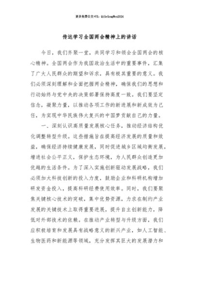 / 【七哥公文】2024年:传达学习全国两会精神上的讲话+更多免费公文+VX:QiGeGongWen2024