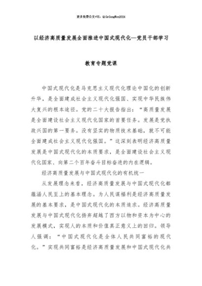 【七哥公文】2024年:以经济高质量发展全面推进中国式现代化—党员干部学习教育专题党课+更多免费公文+VX:QiGeGongWen2024