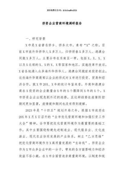 / 【七哥公文】2024年:侨资企业营商环境调研报告+更多免费公文+VX:QiGeGongWen2024