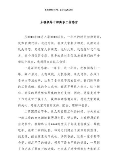 【七哥公文】2024年:乡镇领导干部离职工作感言+更多免费公文+VX:QiGeGongWen2024