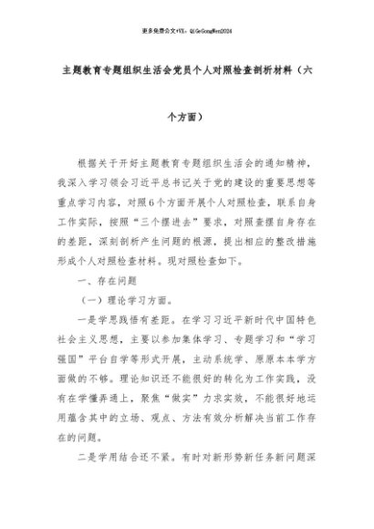 【七哥公文】2024年:主题教育专题组织生活会党员个人对照检查剖析材料(六个方面)+更多免费公文+VX:QiGeGongWen2024