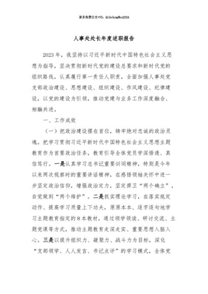 / 【七哥公文】2024年:人事处处长年度述职报告+更多免费公文+VX:QiGeGongWen2024