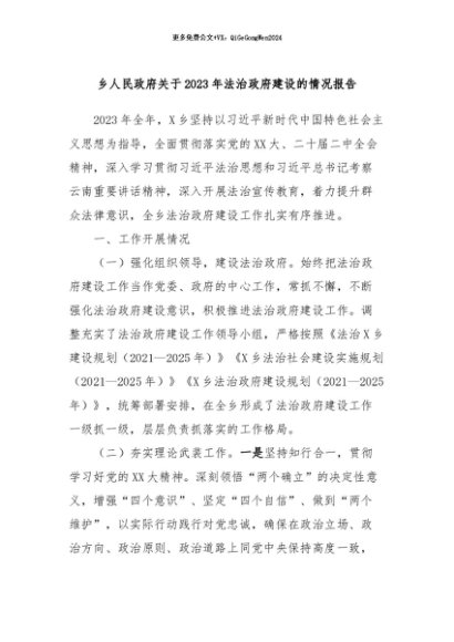 / 【七哥公文】2024年:乡人民政府关于2023年法治政府建设的情况报告+更多免费公文+VX:QiGeGongWen2024