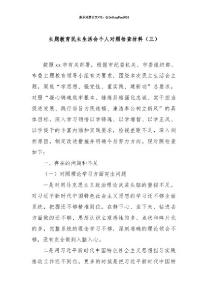 / 【七哥公文】2024年:主题教育民主生活会个人对照检查材料(三)+更多免费公文+VX:QiGeGongWen2024