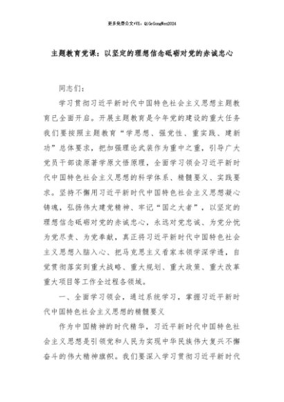 / 【七哥公文】2024年:主题教育党课:以坚定的理想信念砥砺对党的赤诚忠心+更多免费公文+VX:QiGeGongWen2024