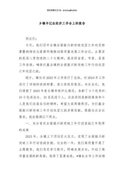 / 【七哥公文】2024年:乡镇书记在经济工作会上的报告+更多免费公文+VX:QiGeGongWen2024