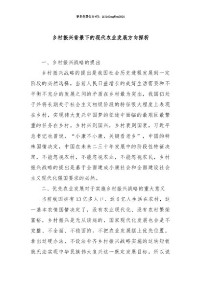 / 【七哥公文】2024年:乡村振兴背景下的现代农业发展方向探析+更多免费公文+VX:QiGeGongWen2024