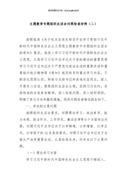 / 【七哥公文】2024年:主题教育专题组织生活会对照检查材料(二)+更多免费公文+VX:QiGeGongWen2024