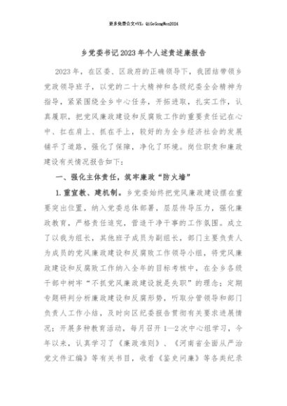 / 【七哥公文】2024年:乡党委书记2023年个人述责述廉报告+更多免费公文+VX:QiGeGongWen2024