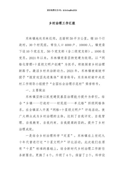 / 【七哥公文】2024年:乡村治理工作汇报+更多免费公文+VX:QiGeGongWen2024