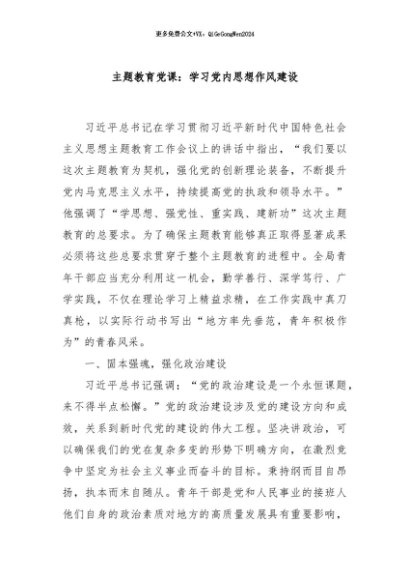 / 【七哥公文】2024年:主题教育党课:学习党内思想作风建设+更多免费公文+VX:QiGeGongWen2024