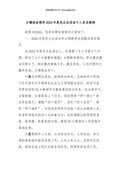 / 【七哥公文】2024年:乡镇政法领导2023年度民主生活会个人发言提纲+更多免费公文+VX:QiGeGongWen2024