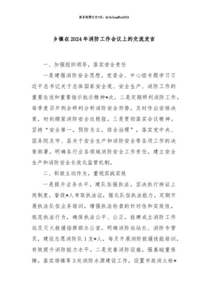 / 【七哥公文】2024年:乡镇在2024年消防工作会议上的交流发言+更多免费公文+VX:QiGeGongWen2024