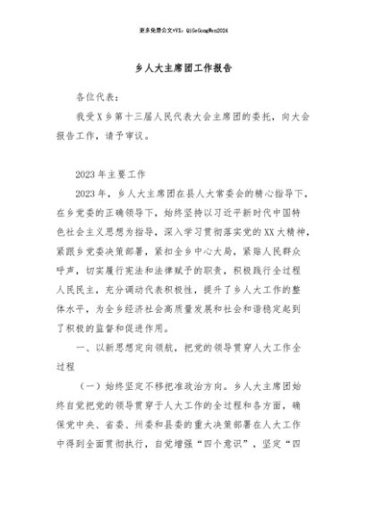 / 【七哥公文】2024年:乡人大主席团工作报告+更多免费公文+VX:QiGeGongWen2024