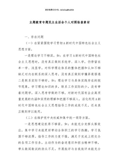 / 【七哥公文】2024年:主题教育专题民主生活会个人对照检查素材+更多免费公文+VX:QiGeGongWen2024