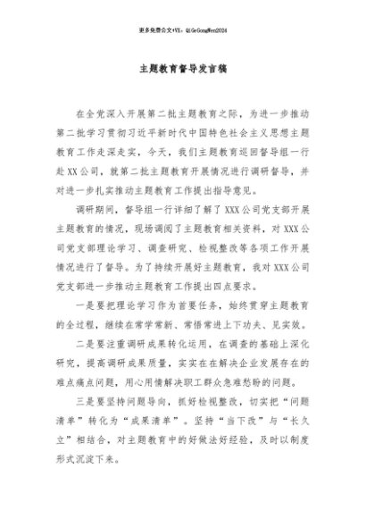 / 【七哥公文】2024年:主题教育督导发言稿+更多免费公文+VX:QiGeGongWen2024