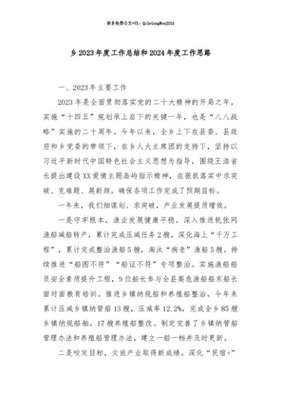 【七哥公文】2024年:乡2023年度工作总结和2024年度工作思路+更多免费公文+VX:QiGeGongWen2024