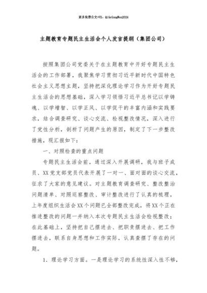/ 【七哥公文】2024年:主题教育专题民主生活会个人发言提纲(集团公司)+更多免费公文+VX:QiGeGongWen2024